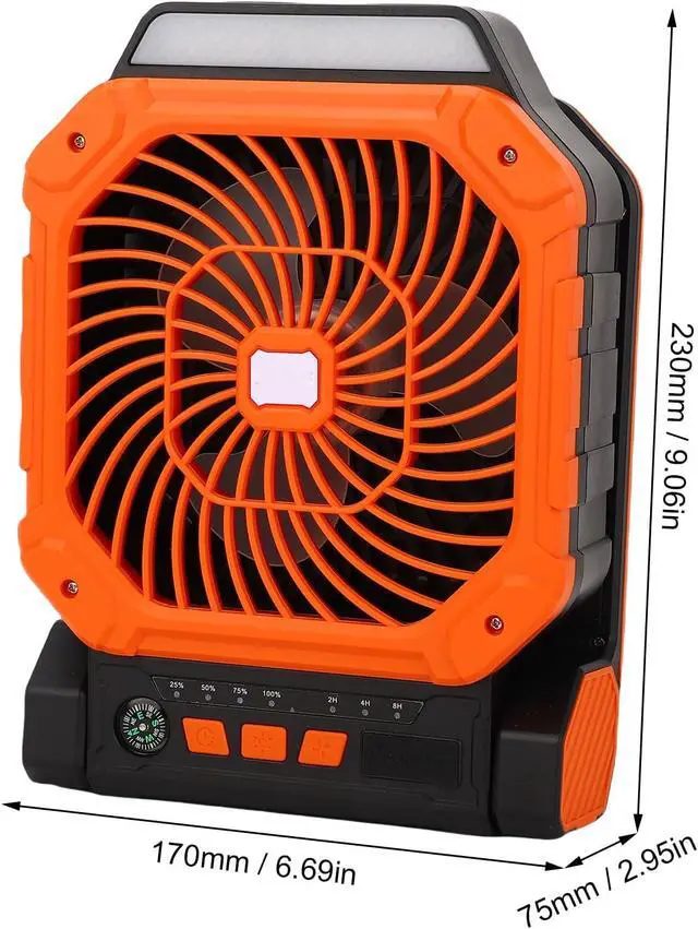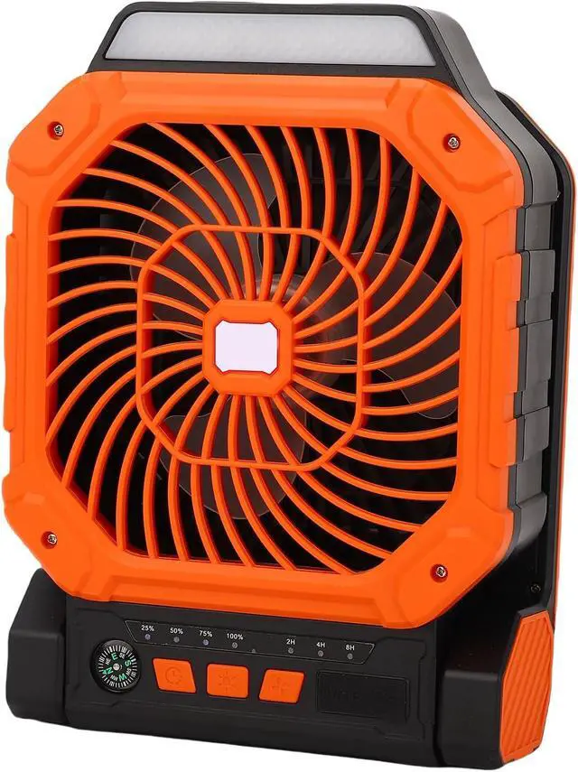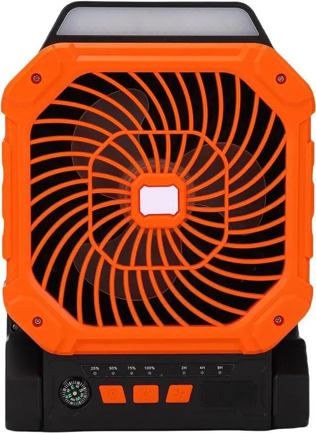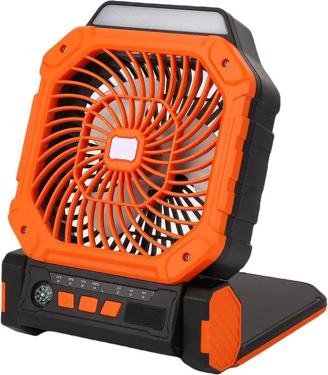 [MULTIFUNCTIONAL DESIGN] This fan features 3 LED light modes, multiple timing settings, and a built-in compass for added convenience during outdoor activities.