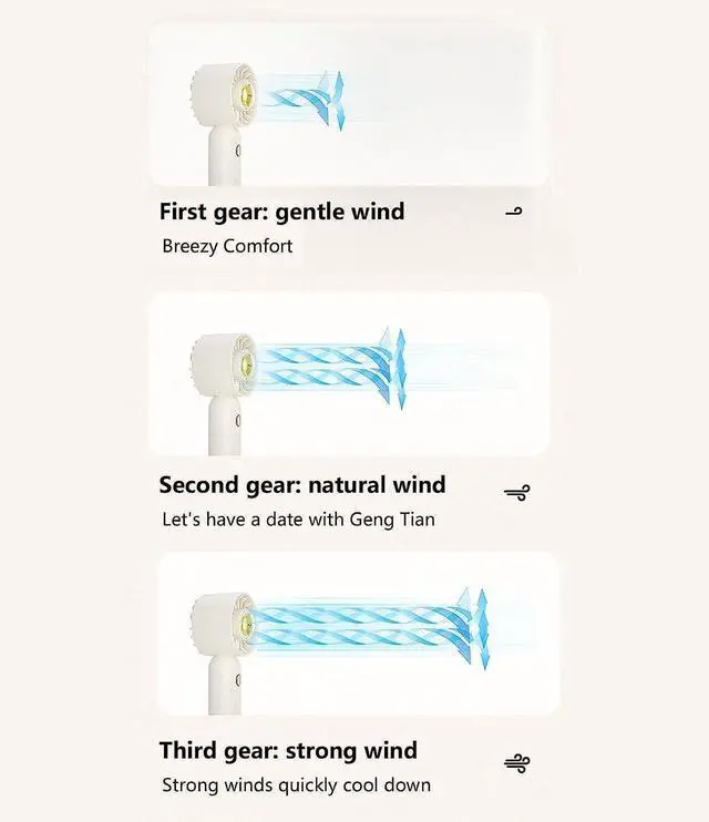 • Adjustable Design: Handheld Fan supports soft wind, natural wind, strong wind 3 gear adjustments. You can adjust the fan speed to keep you cool by pressing the button repeatedly.
