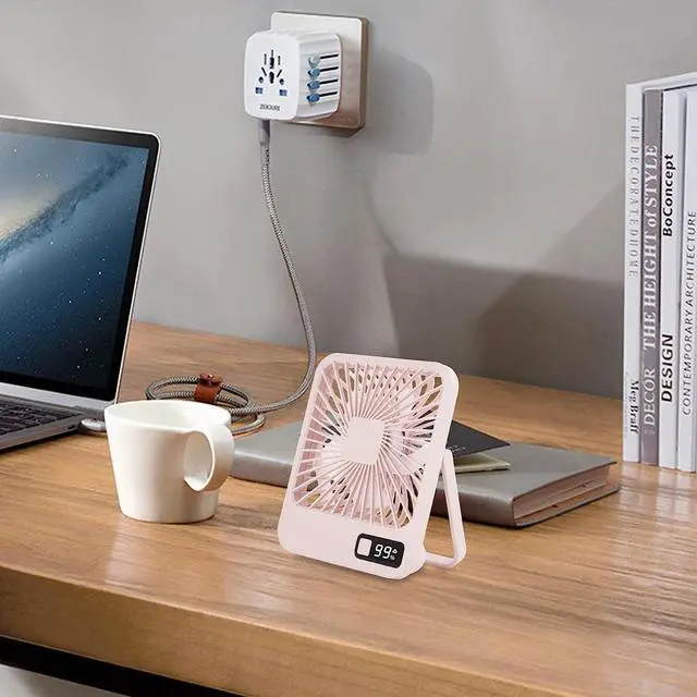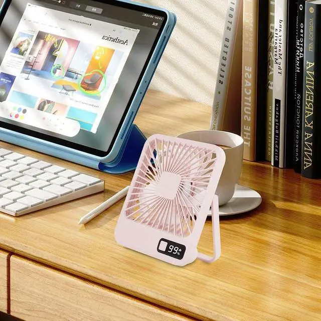 5-Speed Adjustment & Digital Display: The small fan holds five modes of 1st gear, 2nd gear, 3rd gear, 4th gear, and 5th gear, which can be controlled with 1 button. The digital display on the screen shows the power, allowing you to charge in time.