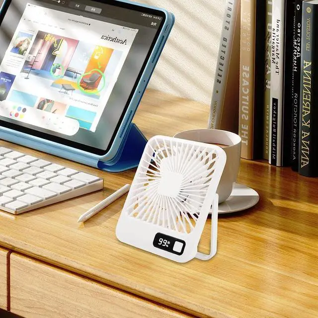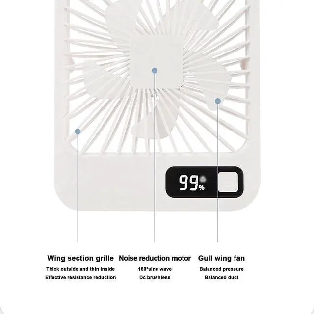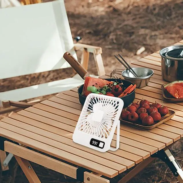5-Speed Adjustment & Digital Display: The small fan holds five modes of 1st gear, 2nd gear, 3rd gear, 4th gear, and 5th gear, which can be controlled with 1 button. The digital display on the screen shows the power, allowing you to charge in time.