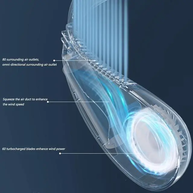 Portable fan with no leaves, no tangled hair. It is a neck fan that frees your hands Built-in battery, can be used wirelessly. 3 wind speeds can be adjusted according to your needs. Lightweight and skin-friendly, you can carry it in various places