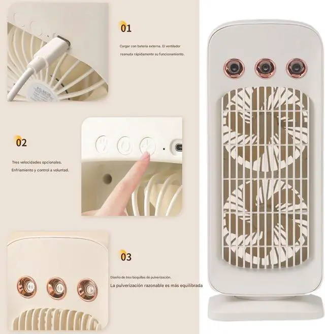 Cooling effect: Fine ultrasonic mist and fan speeds combat dryness and heat. They disperse micronized water particles for a uniform, customized cooling effect.