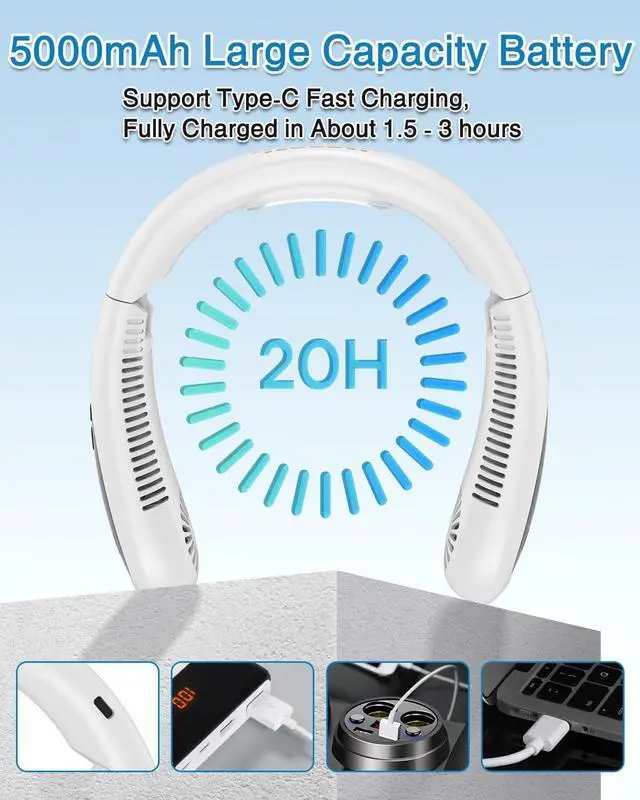 Neck Air Conditioner, 5000mAh Portable Neck Fan, Semiconductor Cooling Airflow, Bladeless USB Rechargeable 3 Speed Personal Fan (White Semiconductor Air Conditioner)