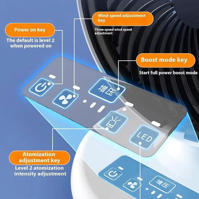 Equipped with 900mL large capacity, led light, and detachable design, this lightweight fan ensuring continuous misting for indoor/outdoor use
