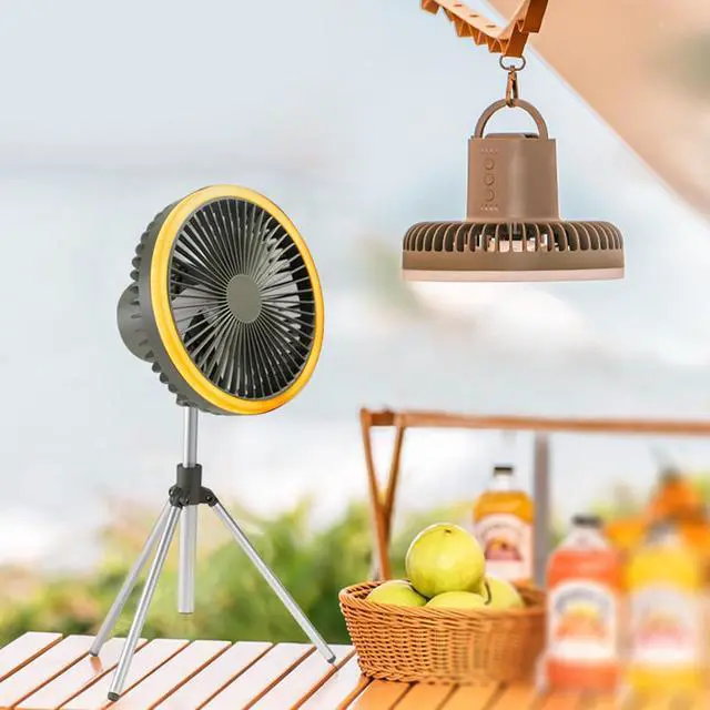This three-legged outdoor fan with colorful lights is a must-have for any camping trip or outdoor adventure