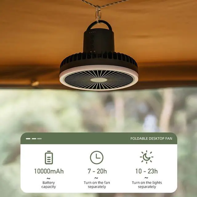 • Multifunctional outdoor fan, remote control+shaking head+colorful lighting