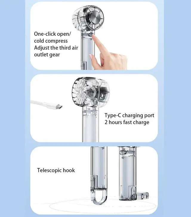 Powerful cooling with transparent portable handheld fan Equipped with a high-speed 1200mAh battery.