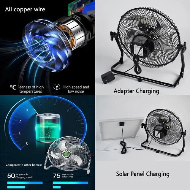 Solar charging fan: The 2024 rechargeable fan with solar panels, as long as there is sunlight, the fan is not afraid of running out of electricity.