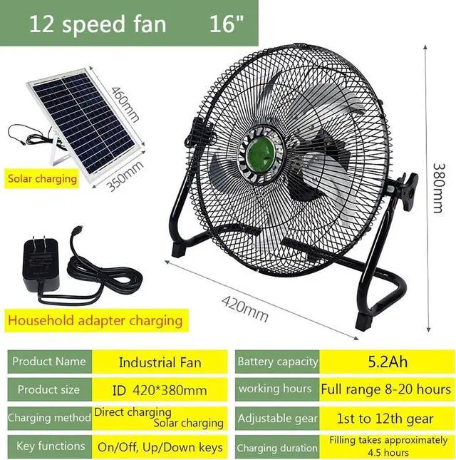 Solar charging fan: The 2024 rechargeable fan with solar panels, as long as there is sunlight, the fan is not afraid of running out of electricity.