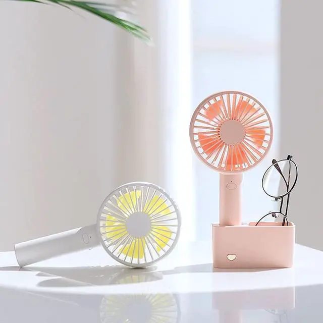 Easy to carry body fits in the palm of your hand and is comfortable to use. The included fan base allows it to stand firmly on the table for convenient storage of small items