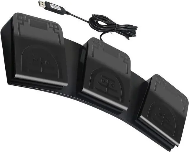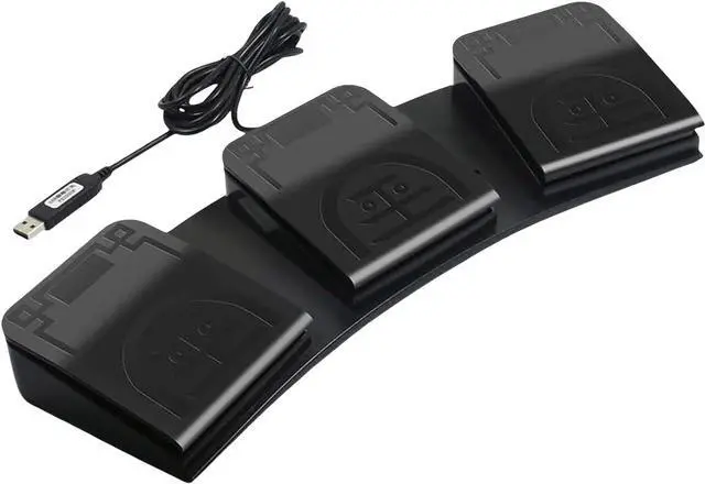 The USB Triple Foot Switches offering programmable 3 customization for keyboards, action, string inputs, and multimedia controls, functioning as a versatiled device through USB connection