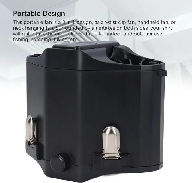 [MULTIFUNCTIONAL PORTABLE DESIGN] Versatile 3 in 1 design allows for waist clip, handheld, or neck hanging use. Air intakes on both sides prevent blockage, ideal for both indoor and outdoor activities like fishing, camping, and hiking.