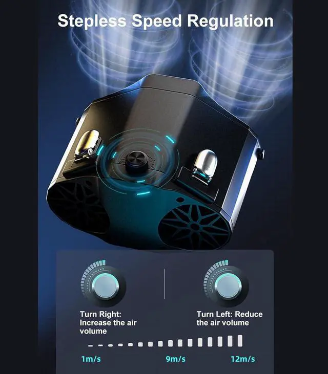 [CONVENIENT DETACHABLE DESIGN] Easily remove the battery for charging with the press of a button. Equipped with a backup battery for continuous use, ensuring lasting and consistent heat dissipation.