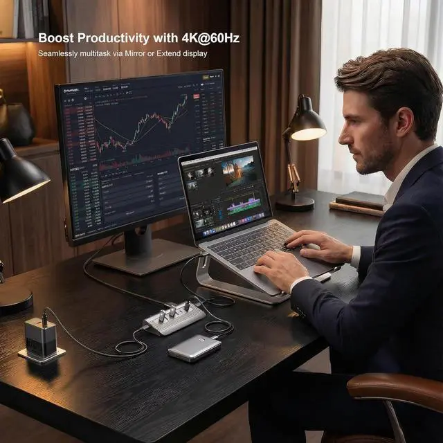10-IN-1 WORKSTATION & WIDE COMPATIBILITY Transform one port into ten. Optimized for MacBook Pro/Air (M1-M4), Mac Mini, and iMac. It also serves as a perfect dock for Gaming Handhelds (Steam Deck/ROG Ally) to connect a monitor, keyboard, and mouse for a full desktop experience. Housed in a ribbed aluminum shell for superior heat dissipation. (Note: Requires host USB-C port with DP Alt Mode).