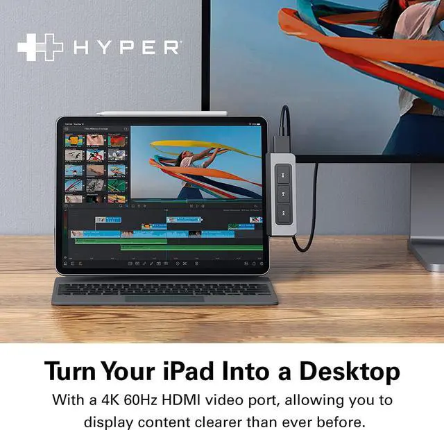 TURN YOUR iPAD INTO A DESKTOP - The HyperDrive 6-in-1 USB-C Media Hub for iPad is the ultimate desk USB hub. Transform your USB-C iPad (10th generation), iPad Pro, Air, or mini into a powerhouse workspace with an HDMI port, USB-C 5Gbps 60W Power Delivery port, MicroSD/SD slots, USB-A 5Gbps port, and a 3.5mm audio jack.