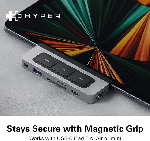 FITS LIKE A GLOVE - The magnetic grip lets the hub securely attach to your iPad making it the perfect USB-C travel hub for your iPad. The included USB-C cable allows the hub to work with any USB-C device like tablets and laptops.