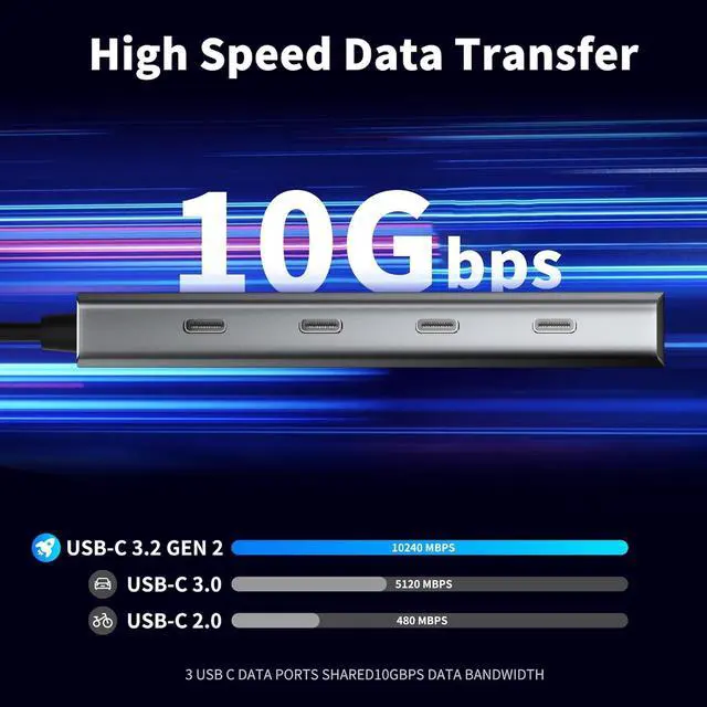 10Gbps USB C DATA TRANSFER: This USB C Hub can synchronize data through 3 USB C data transfer ports while sharing 10Gbps data bandwidth, which can transfer and backup data for your external devices efficiently. Compatible with Type-C devices such as laptops, SSDs, and tablets.