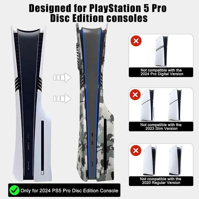 • Designed for PS5 Pro Disc Edition Consoles:The face plates only for PlayStation 5 pro console disc edition. It works exactly like the original shell and perfectly replaces the original shell of PS5 pro console
