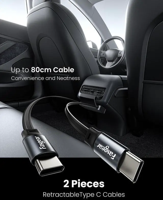 2 Pieces Retractable Type C CablesOur Tesla Model 3 accessories USB hub for the rear air condition vent outlet, comes with 2 pieces retractable type c cables. Maximum retractable 80cm length can satisfy the daily fast charging needs of the backseat passenger. The goal of the backseat passengers playing while charging can be achieved. Meanwhile, our car hub can save you from finding charging cables and bring neatness.
