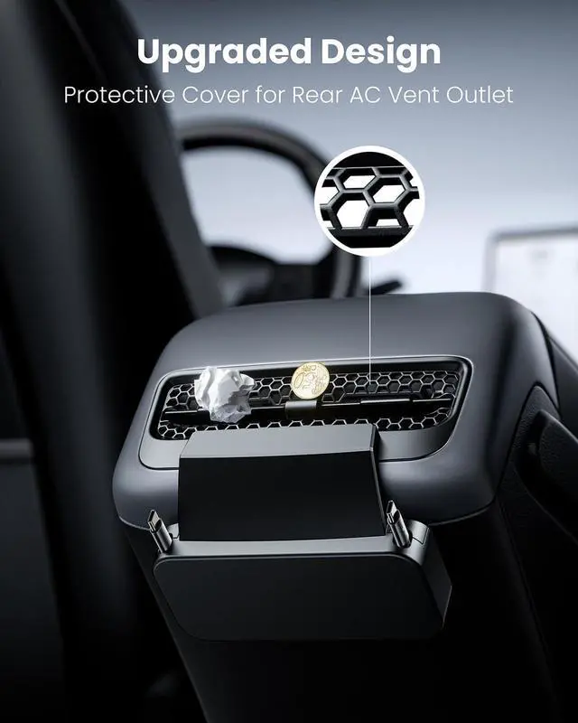 Upgraded 2-in-1 DesignThis Tesla USB Charger is not only a USB hub with 2 pieces retractable type C cables, but also is a rear seat air AC vent cover. That means, this honeycomb-shaped hexagonal grid air flow vent grille protection set will prevent clutters, like coins and candies, from entering and clogging up the air condition vent outlet, without interfering and adjusting the working of the air outlet. The PC+ABS material brings durability to the protective cover.