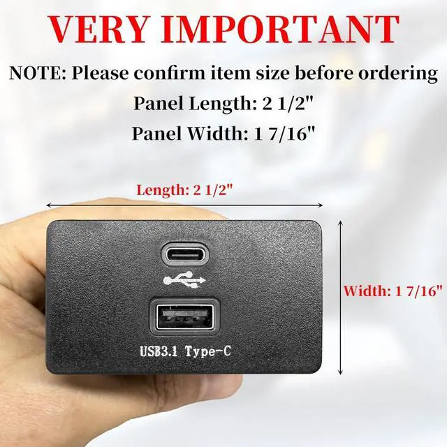 NOTE - The USB-C hub is not compatible with Sync 3/2.0/2.3/3.0/3.2. You will need to upgrade to version 3.4 to access CarPlay. [NOTE: Please confirm item size before ordering. Very important.] [NOTE: Panel Length: 2 1/2"; Panel Width: 1 7/16".]