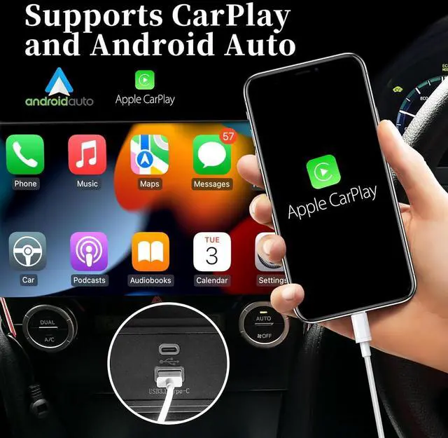 Dual Port USB C Carplay usb interface Hub - Carplay USB interface hub, support mobile phone charging, data transmission, multimedia links, music, SMS, telephone, navigation and other functions. Compatible with Apple and Android.