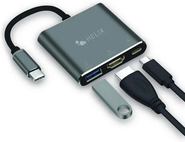 Features USB-A, HDMI and USB-C ports Convenient plug-and-play design Slim, portable build fits neatly into laptop bag 4K HDMI for crystal clear, ultra-HD video USB-C port with 60W power delivery