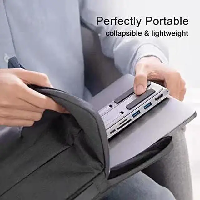 [Laptop Stand Meets USB-C Hub] Our lightweight and foldable laptop stand safely supports laptops from 10-17 inches and features 7 integrated ports for all your connectivity needs.Compatible with Chromebook, Windows PC, MacBook, iPad Pro