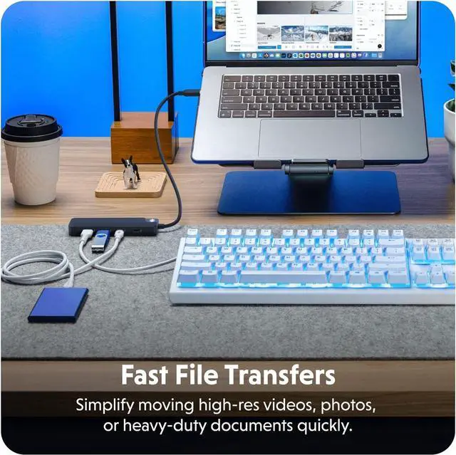 Fast File Transfers Transfer large files and photos in seconds with the 5Gbps USB-C ports. Keep your creative flow uninterrupted, whether youre moving high-res images or project files.