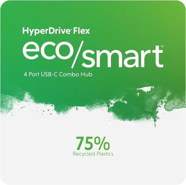 Recycled Materials Make a sustainable choice without sacrificing performance. The HyperDrive Flex 4 Port USB-C Combo Hub is built with 75% recycled plastics, offering an eco-conscious option for your bold and vibrant workspace.