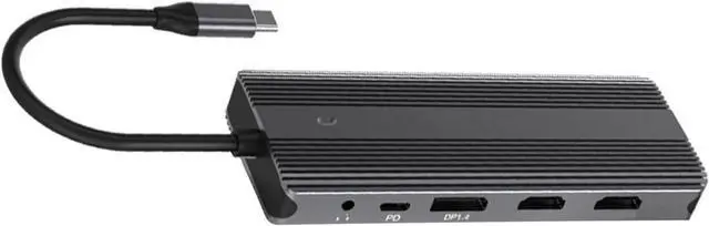• from aluminum and PVC, this USB C Docking Station boasts portable design with plugs and play convenience, eliminating the need for driver while offering RJ45 Gigabit Ethernet, card slots, and auxes 3.5mm music