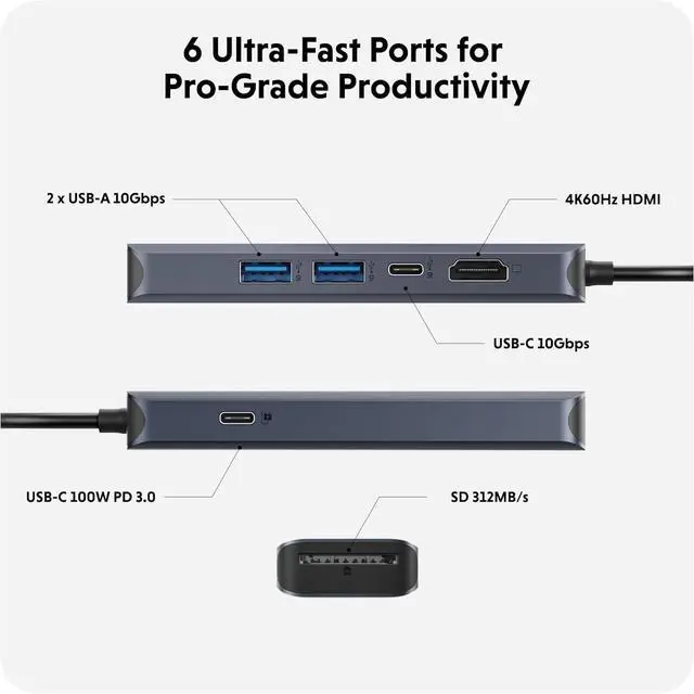 Transfer Photos and Video at 3X Speeds with 312MB/s SD: Provides significant time savings for video editing and photography workflows, as this USB-C hub is a travel gear that allows for ultra-fast and efficient transfer of high-resolution images and videos, enabling seamless editing, quicker file backups, and accelerated post-production processes.