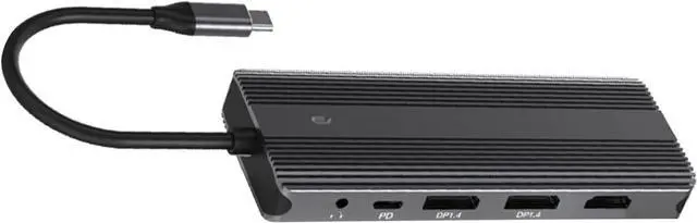 from aluminum and PVC, this USB C Docking Station boasts portable design with plugs and play convenience, eliminating the need for driver while offering RJ45 Gigabit Ethernet, card slots, and auxes 3.5mm music