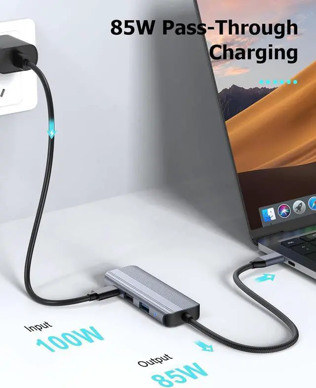 Powerful 100W PD Charging100W PD Pass-Through Charging: Keep your devices charged with the USB-C Power Delivery port. Supporting pass-through charging up to 100W (20V/5A) and data transfer, this port ensures your laptop, tablet, or smartphone stays powered up and connected while you work, stream, or play.