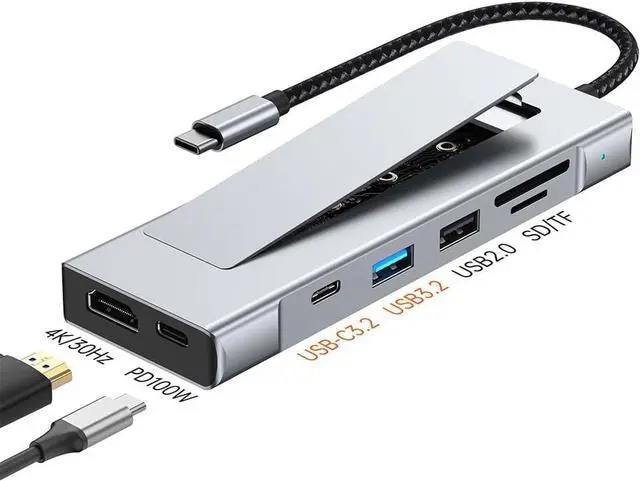 USB hub with one USB 3.2 Type-C 10Gbps port, one USB 3.2 Type-A 5Gbps port, and one USB 2.0 Type-A port