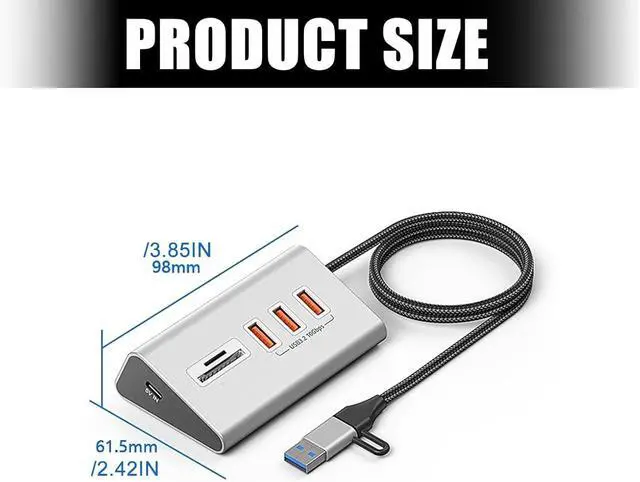 • from aluminum alloy, this hub 3x USB A port, 1x USB C 3.2 port, and double card slots to expand your laptop capabilities