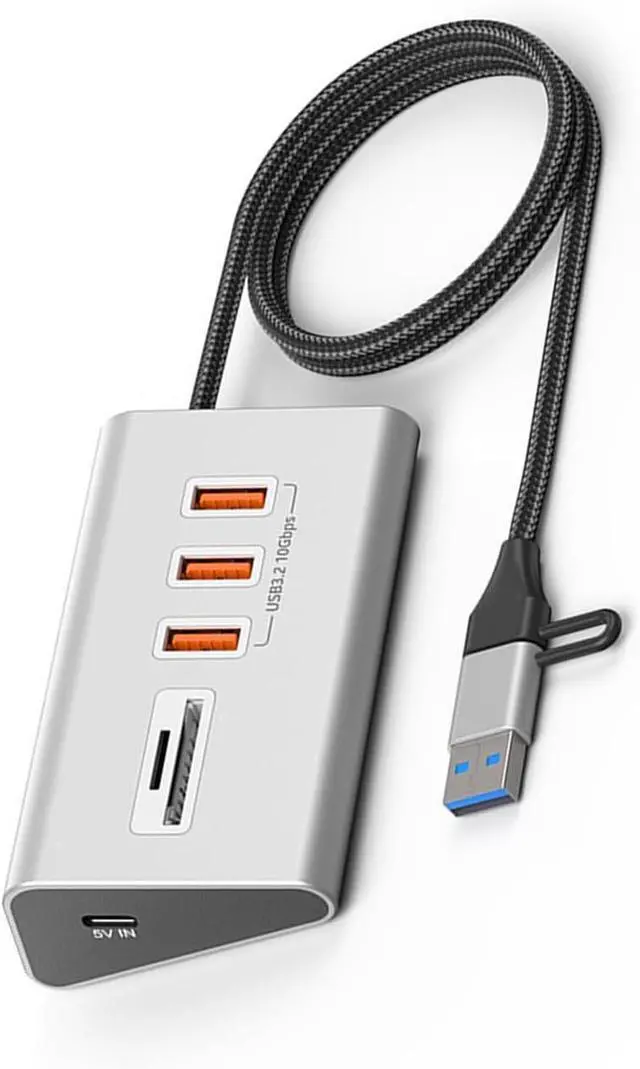 from aluminum alloy, this hub 3x USB A port, 1x USB C 3.2 port, and double card slots to expand your laptop capabilities
