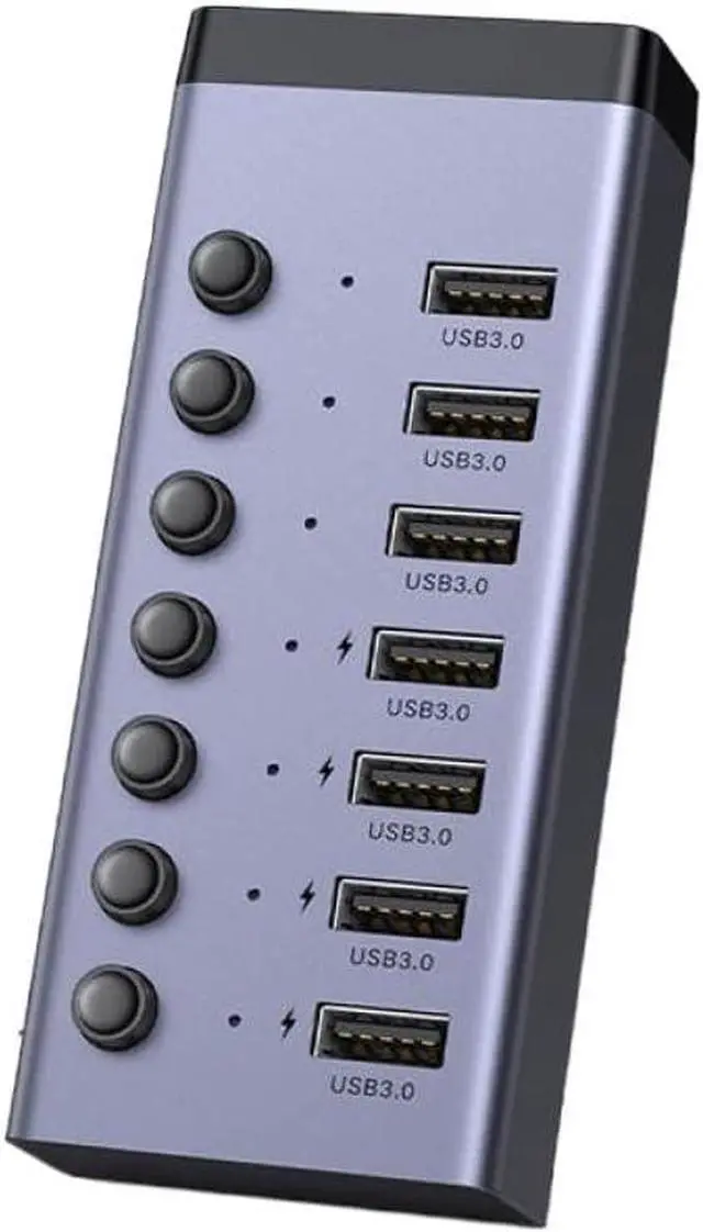 Equipped with 7 individual ports including USB-C compatibility for broad device support ideal for laptops PCs and workstations