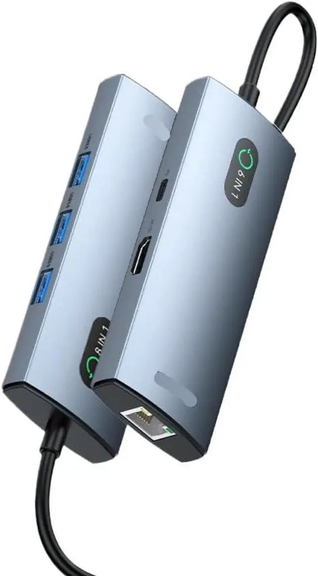 Rocoren 6 in 1 USB C Hub compatible with Air Pro, Pro, Chromebook, and other USB-C enabled laptops for connectivity across multiple devices