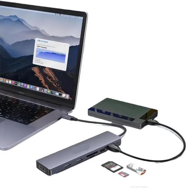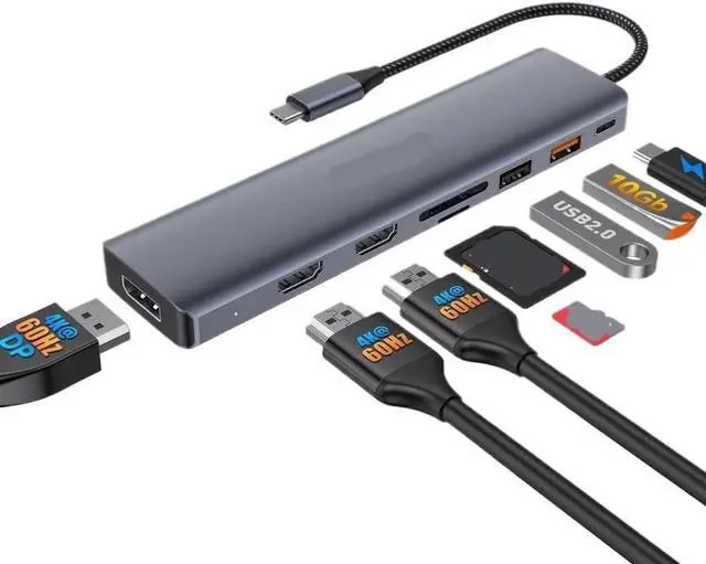 Model supports 8-in-1 multiport expansion with dual HDMI and DisplayPort delivering up to 60Hz for dual monitor setup