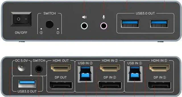 Model UNITEK 2×2 HDMI DP KVM Switch supports dual monitor setups with HDMI and DisplayPort connectivity for flexible display configurations