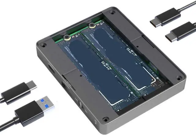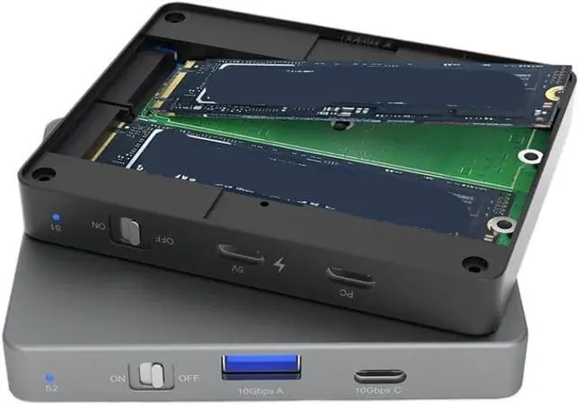 Supports dual M.2 NVMe SSD installation with individual bay control for flexible storage expansion on laptops and desktops