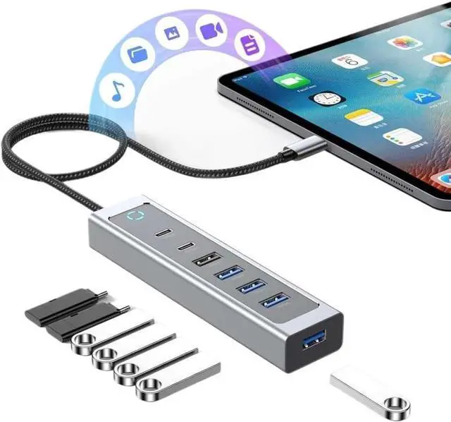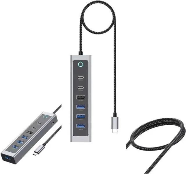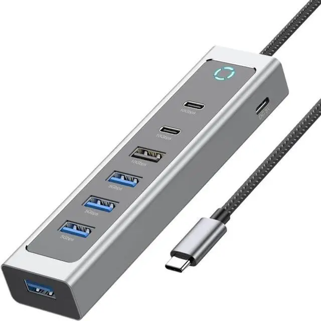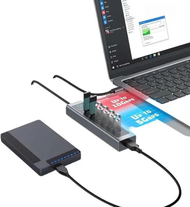 Model RSHTECH 10Gbps USB Hub supports ultra-fast data transfer speeds up to 10Gbps on USB-C 3.2 and USB-A 3.0 ports efficient file transfers and connectivity