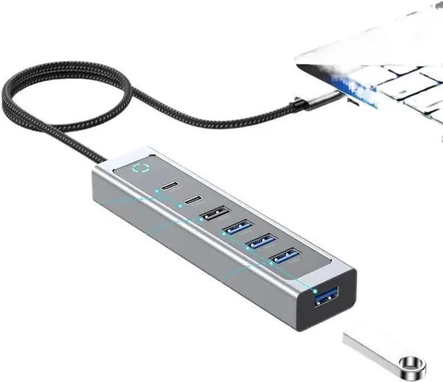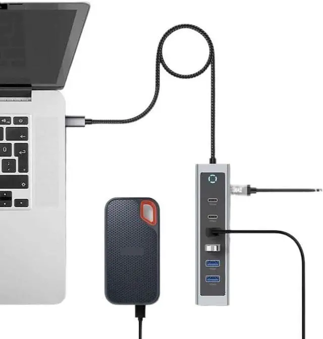 Equipped with 2 USB-C 3.2 Gen 2 ports and 4 USB-A 3.0 ports this hub expands your laptop's connectivity for multiple peripherals including external drives monitors and accessories