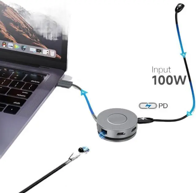 Features Power Delivery up to 100W allowing continuous of your device while using multiple peripherals