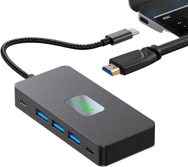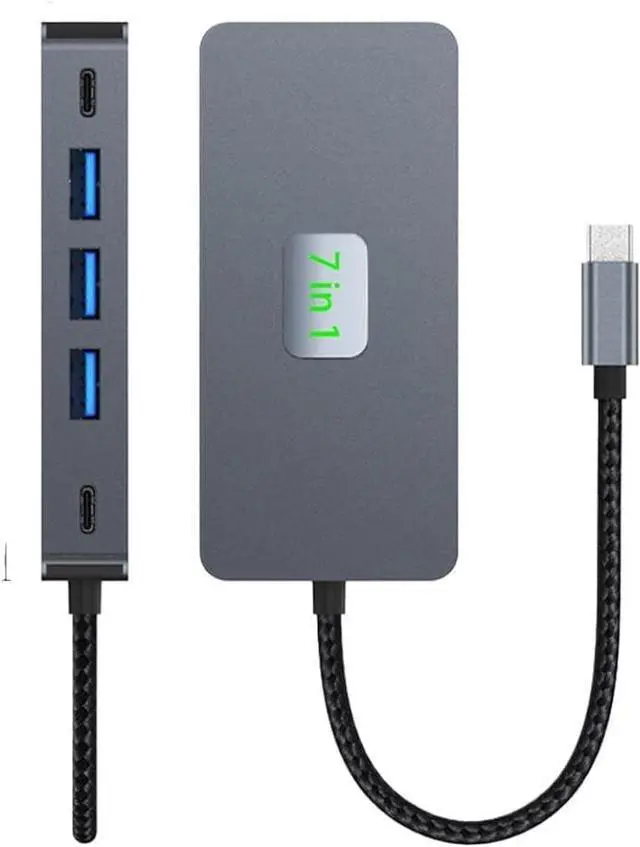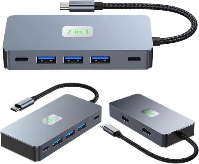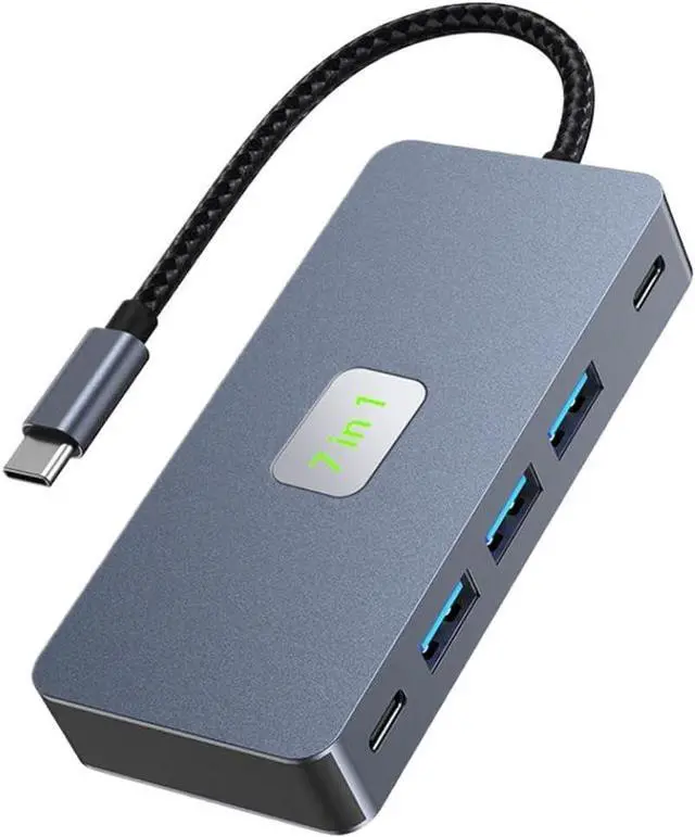 7 in 1 design integrates HDMI, USB A, USB C, Ethernet, and ports in a compact hub
