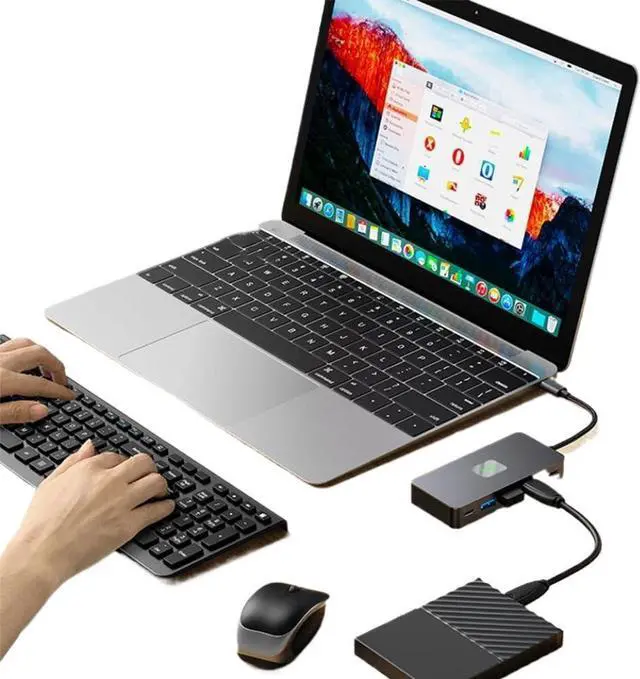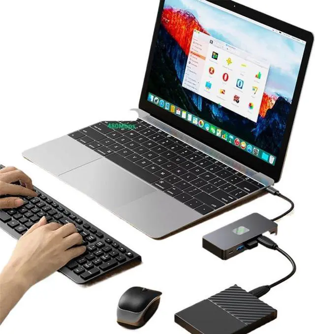 Enables expanded workspace with support for external displays, keyboards, and -speed data transfer