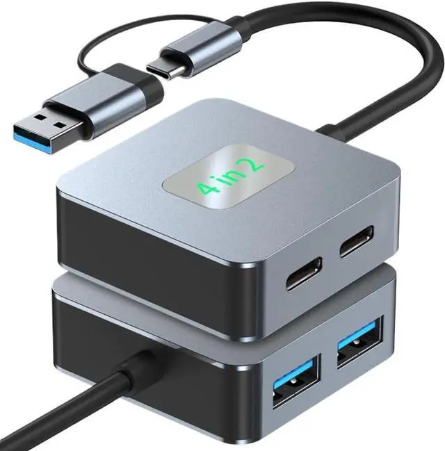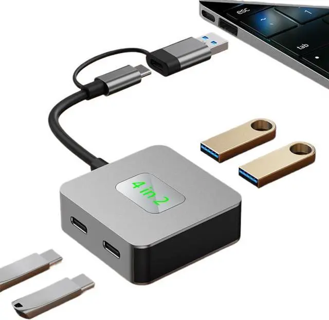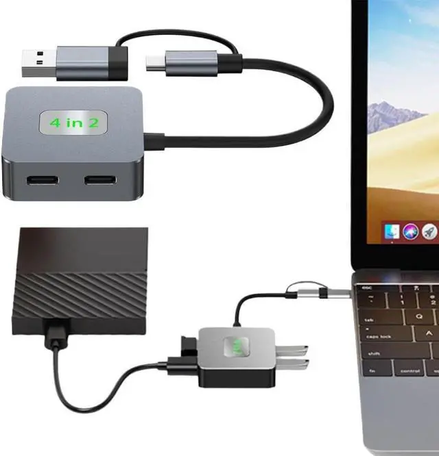 Equipped with 2 USB-A and 2 USB-C ports providing versatile connectivity for laptops tablets smartphones and external drives