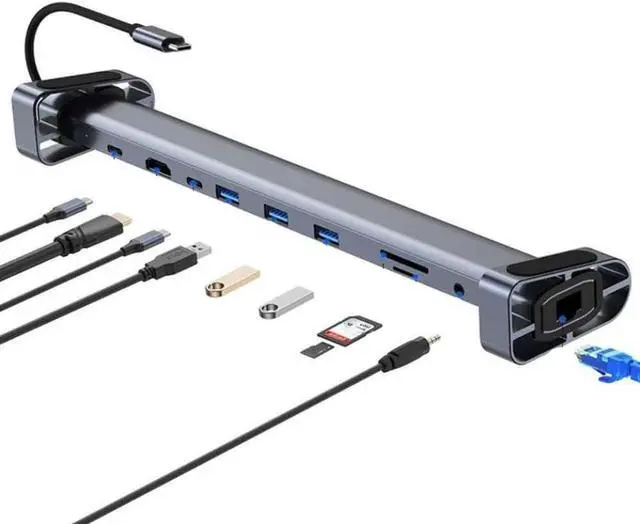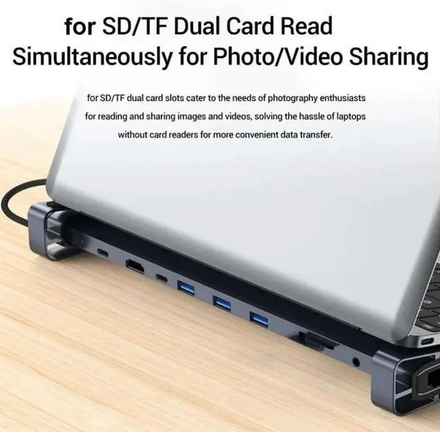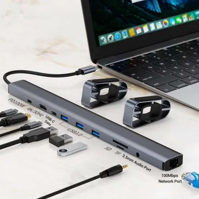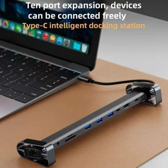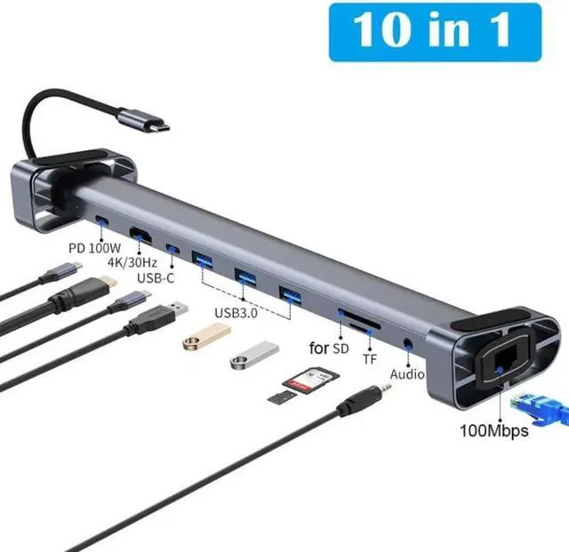Equipped with 10 in 1 multifunctional design offering USB 3.0 ports HDMI output SD microSD card readers Ethernet RJ45 and PD 100W for comprehensive connectivity