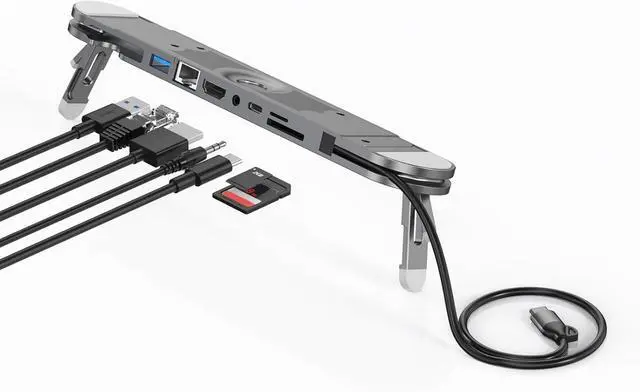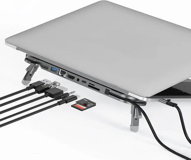This 7-port USB C docking station features a foldable laptop stand, 4k60hz output, Gigabit Ethernet, and pd100w charging for seamless multitasking between laptops to maximize productivity